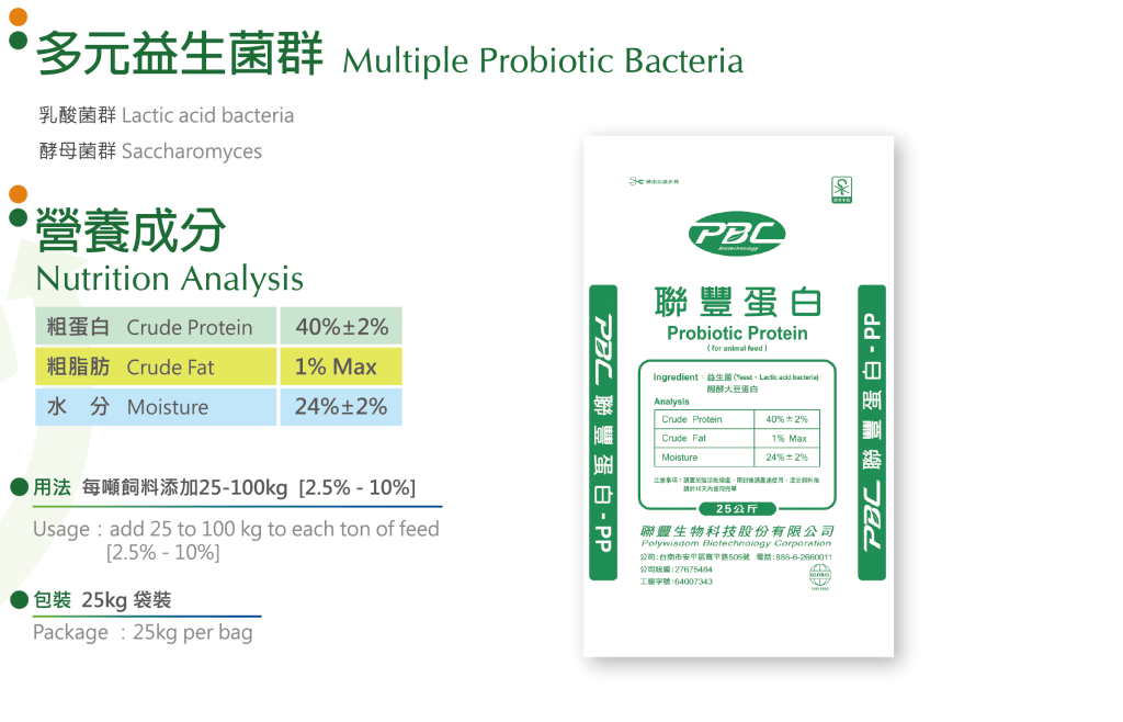 - 活性生物蛋白 : 含活性益生菌群、小份子蛋白、菌體蛋白、維生素B、酵素、有機酸及豐富的菌解代謝產物